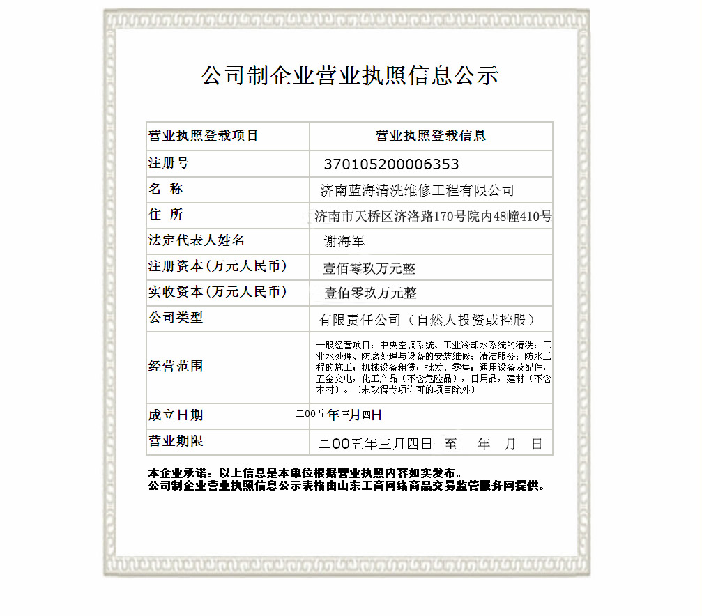 濟(jì)南藍(lán)海清洗維修工程有限公司